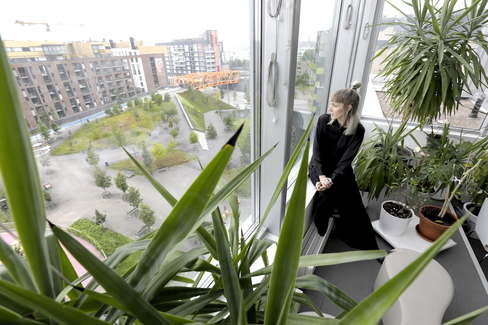 ”Jätkäsaari ei ollut minulle entuudestaan kovin tuttu, joten kävin tutustumassa alueeseen ennen muuttoa. Tykkäsin heti etenkin arkkitehtuurin kerroksellisuudesta. Meidänkin parvekkeelta näkyy erilaisia taloja ja tyylejä”, Mirkka kertoo.