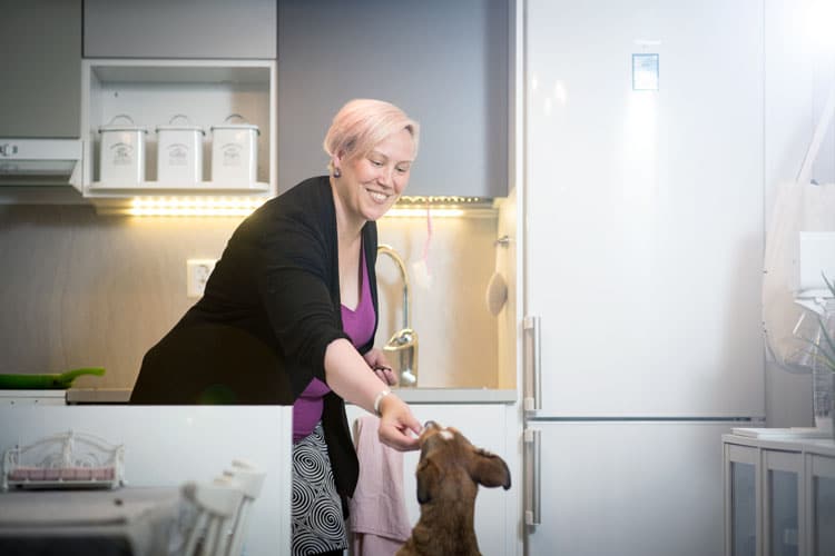 ”Ainakin minä olen aidosti ylpeä talostamme. Jätkäsaari on erityislaatuinen asuinalue, ja meillä on aivan erityislaatuinen talo”, Anne iloitsee.
