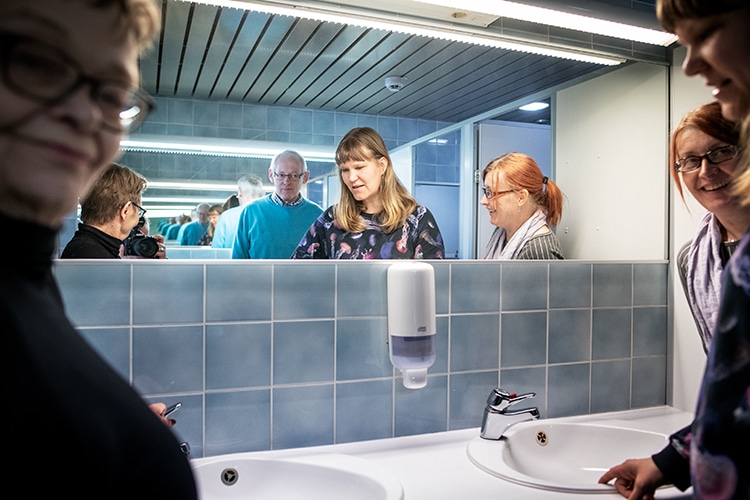 Kilpailun starttitilaisuuteen osallistuneet talot miettivät myös yhdessä, miten vedenkäytössä voisi nipistää. Yksi vinkki sai naurunremakan säestämänä ehdottoman ein. Suihkuun ei saa pissata, vaikka haluaisikin säästää vessan vetämiseen kuluvan veden. Viemäri alkaa haista.