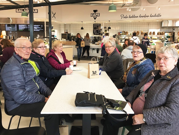 Senioriporukka Markku, Eija, Helena, Senja, Tarja ja Pirkko Hyvinkäältä pitivät erityisesti siitä, että Ähtärin eläinpuistoa kiertäessä tuli tehtyä samalla kolmen kilometrin kävelylenkki. ”Päivä oli todella mukavaa vaihtelua arkeen”, seurue kiitteli.